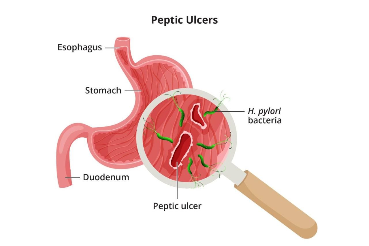 The word “peptic” refers to the digestive tract. An ulcer in the lining of the stomach is a gastric ulcer. An ulcer in the first part of the small intestine is a duodenal ulcer.
